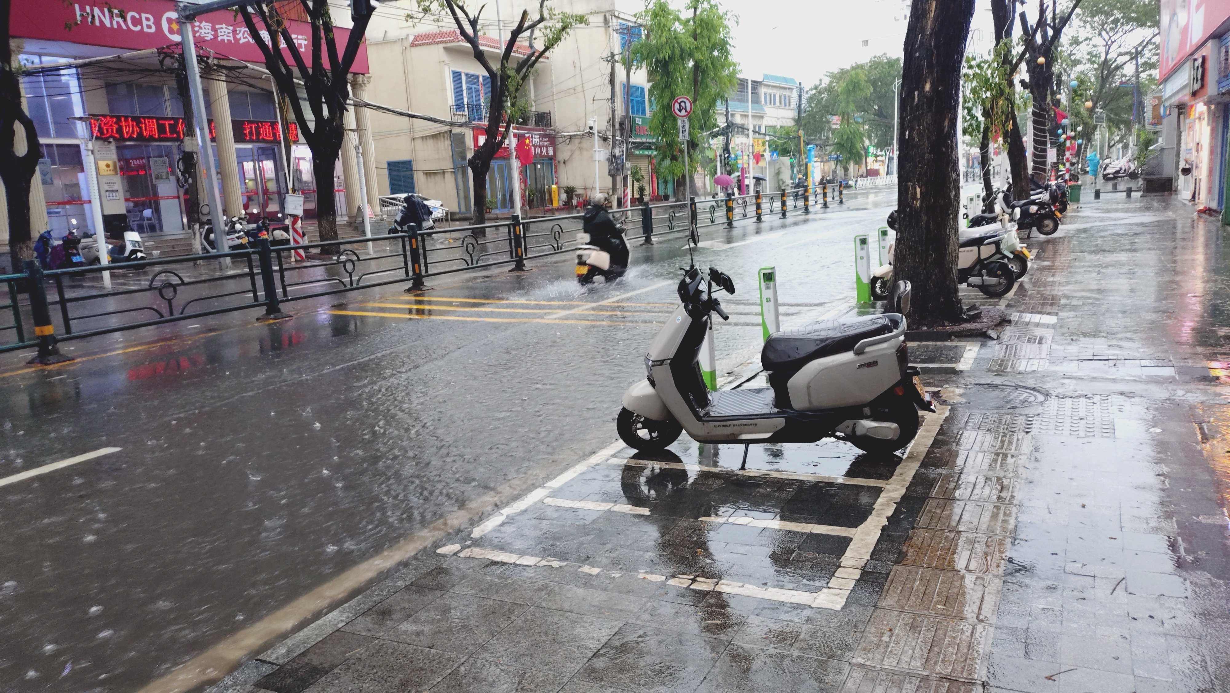 ところが翌6日、朝起きると洗車機に入ったような猛烈な雷雨、向かいの建物すら見えません。一方、風は全くなし。台風本体ではなく、「普通の」南国雷雨に当たってしまったようです。