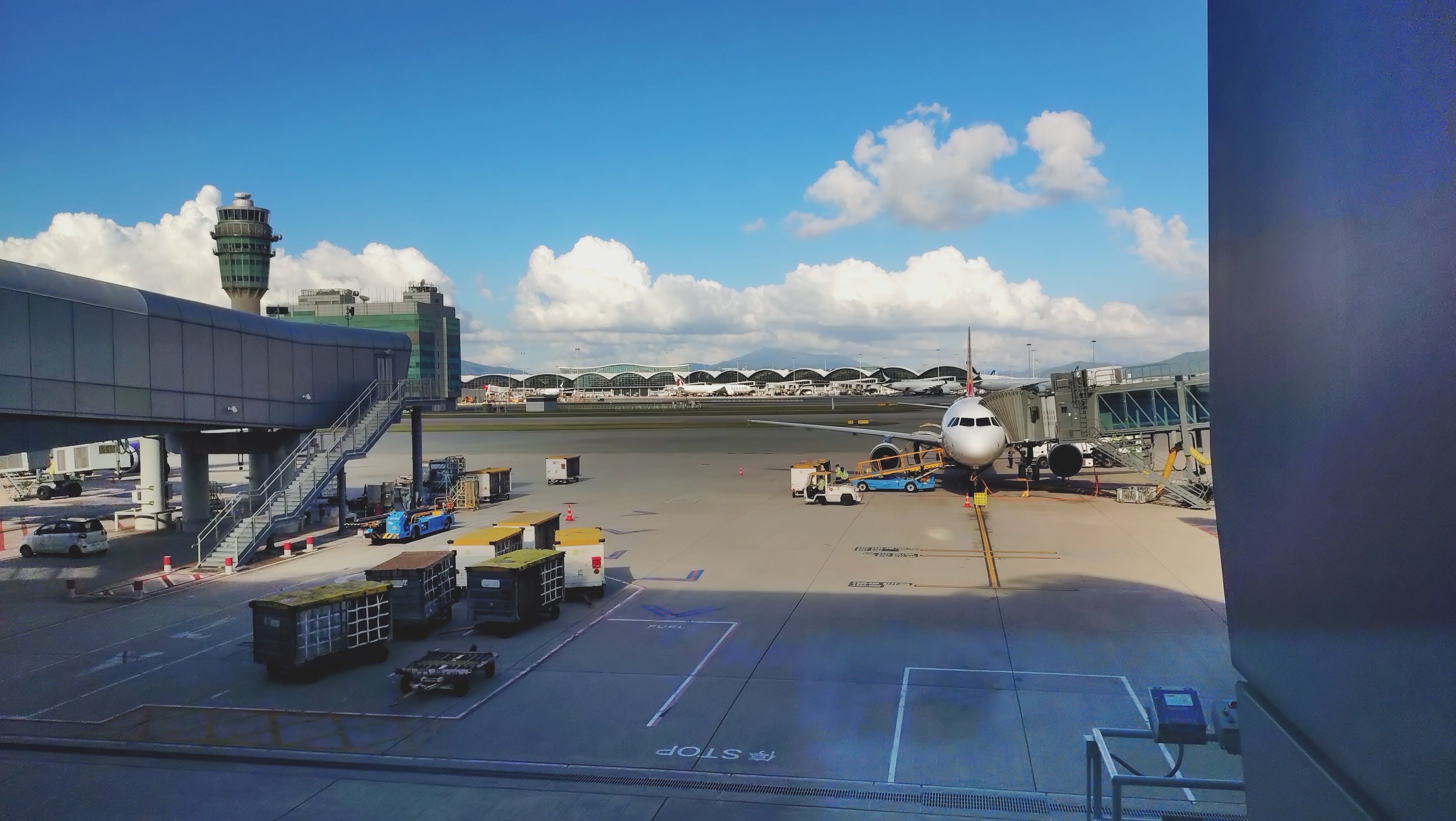 遅れは10分まで回復し、15時55分に香港着。元の予定こそ大きく崩れたものの、帰国便のHX606(26時10分発)に余裕を持って間に合いました。