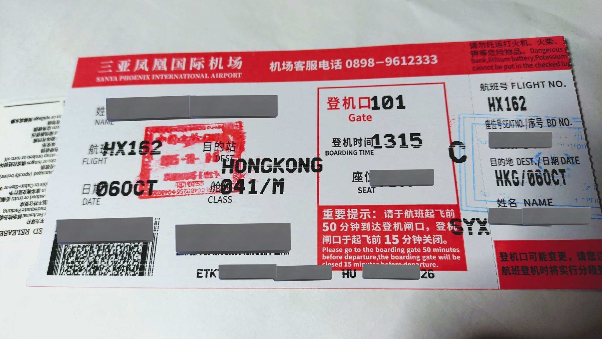 幸運なことに、国慶節終盤のUターンにも拘わらず、三亜から直接香港に向かう香港航空HX162便が手ごろな値段で残っていました。5日は念のため終日三亜にとどまり、6日朝の便でへ向かうこととしました(宿の方には筆談で宿泊延長を交渉し、快諾していただけました)。