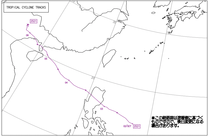 前回書いた通り、海南島付近には10月5日から台風21号(マットゥモ)がやってきました。